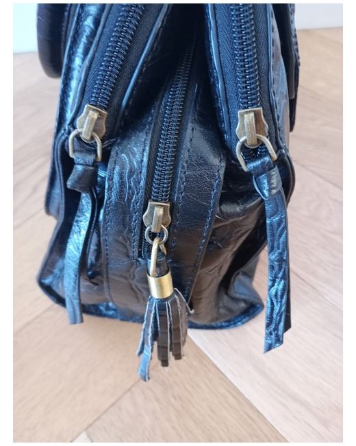 Black leather handbag with crocodile effect. Comes with original tissue paper padding and dust bag. Dimesions as shown.
