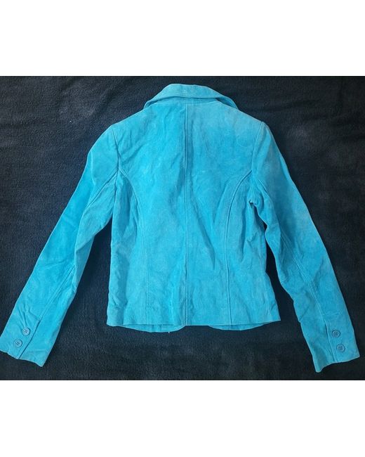 Punkyfish Leather Jacket in turquoise blue, size says medium but closer to 8/10.