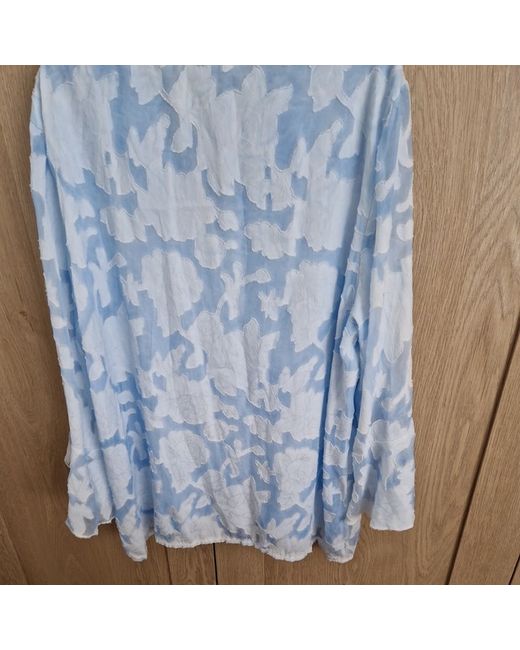 Add a pop of colour to your wardrobe with this beautiful light blue floral blouse from Blue Light. Designed with a regular fit, 3/4 sleeves and made from high-quality materials, this blouse is perfect for any occasion. The floral pattern adds a touch of elegance and sophistication to your outfit, making you stand out from the crowd. Available in size L, this blouse is perfect for women who want to add a touch of style to their wardrobe. The blue colour complements any outfit and makes you look stunning. Ideal for any casual or formal event, this blouse is a must-have in your wardrobe. double layered floaty material feels lovely on but just too big