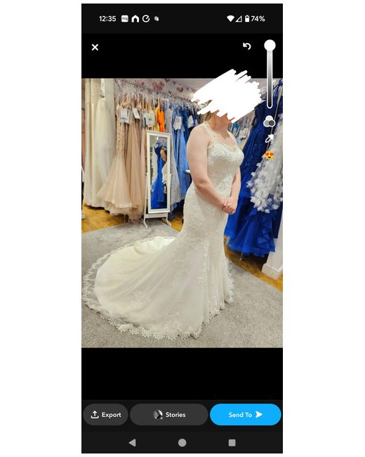 Brand new wedding dress never worn has vail plus head piece, beautiful dress