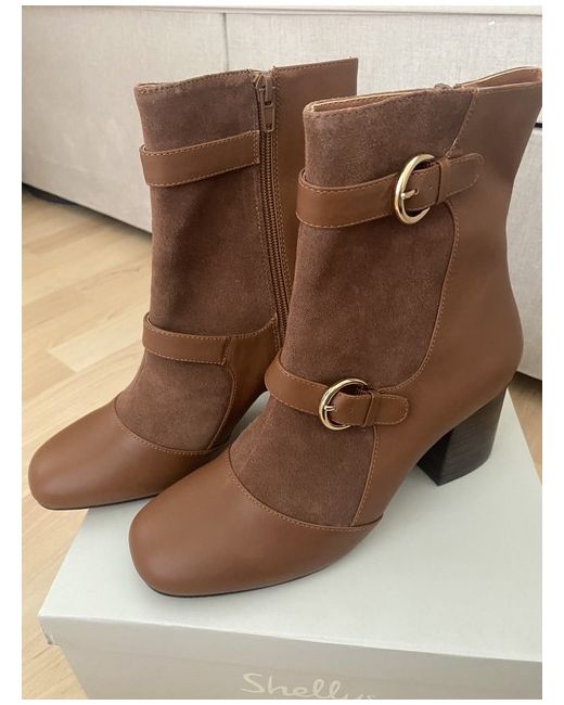 Shellys London Mars Tan Block Heeled Zip-Up Boots Brand New UK 7 EU 40