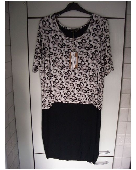 Double Layer ā Black Dress with attached patterned top (looks like 2 pieces) but is one. Too big, hence sale. Shell 97% Viscose 3% Elastane. Underarm to Underarm 19ā (38ā) laid flat. Length 38ā approx.