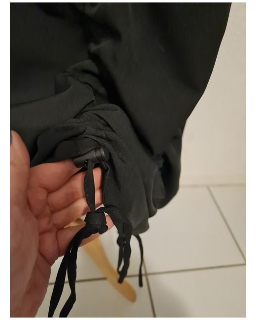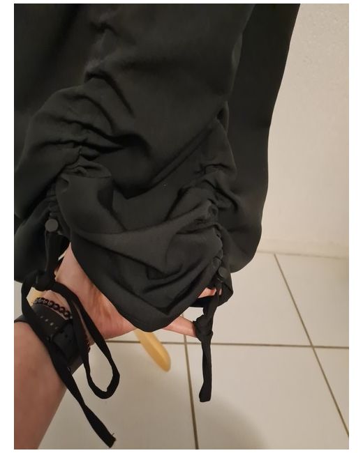 New black misscity long dress with a label, length adjustable at the front and back with strings, a crease is created when the strings are pulled down, long sleeves in love with a welt and a tape with a logo The bust flat, 2x48cm, will be slightly stretched Hips flat 2x55cm Overall length 132cm Dress from Poland