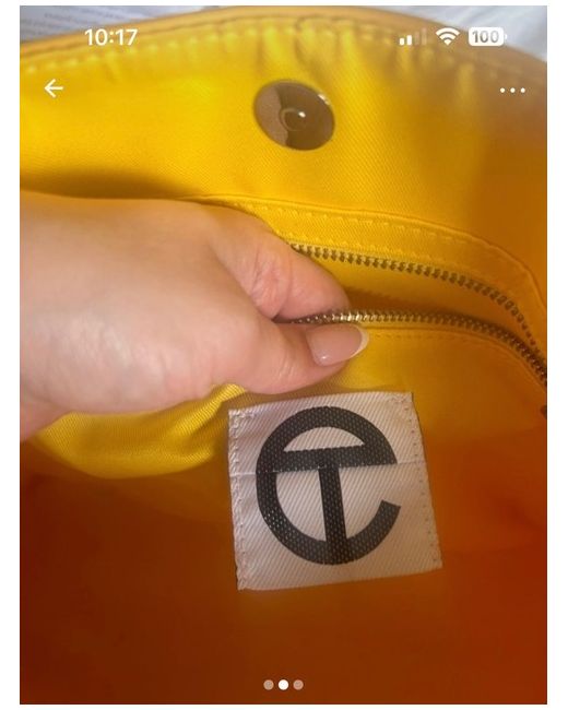 This large yellow Telfar bag is the perfect addition to any wardrobe. With its spacious interior and stylish design, it's sure to become a favourite go-to for any occasion. The brand is known for their quality and durability, making this bag a great investment piece.The tote style and bright yellow exterior make it a statement piece that will elevate any outfit. It's designed for women and has never been used, making it an excellent choice for those looking for a fresh start. The bag is perfect for summer.