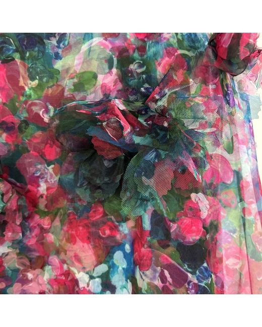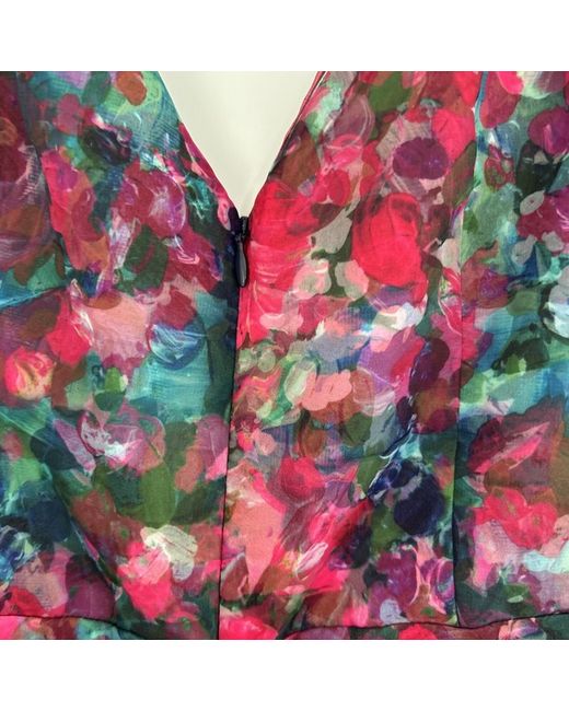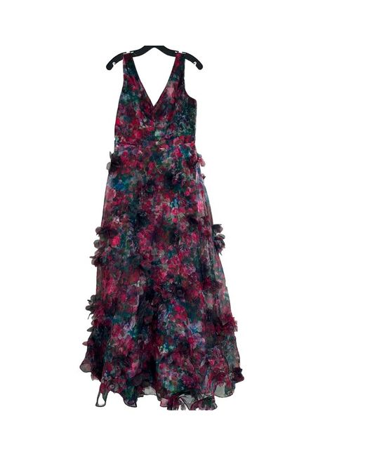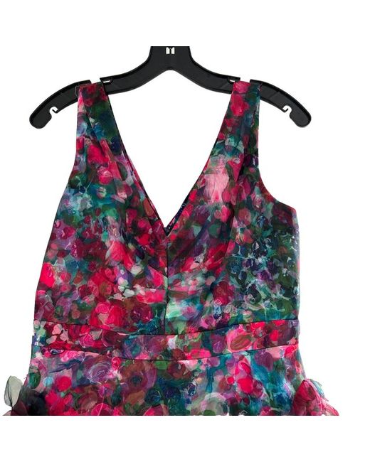 V neck Floral ball gown with partial tulle lining to create the fullness Black with mix of pink, blue, purple flowers Back has deep V with zipper opening, and large tulle bow Used once Size 6 US fits around 10-12uK