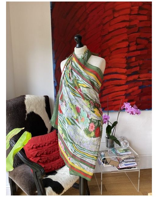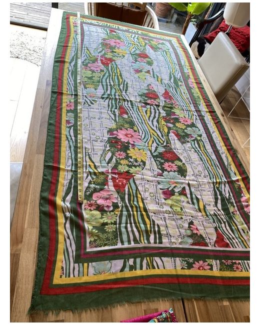 Hi, thank you for your interest. This scarf is so gorgeous! The colours are beautiful and it’s nice and big and fabric is super soft! It’s big enough to create many cool summer styles. Item comes from a smoke free home.