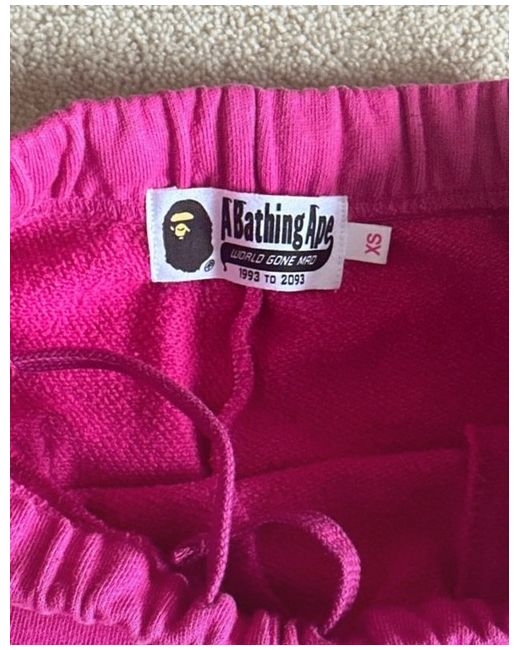 These are Bape pink joggers in size XS for women. They are regular fit jogger.