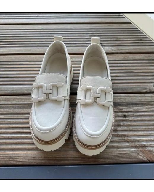 Elevate your style with these beautiful Carmela leather loafers. Crafted with the finest leather, these flats are perfect for any occasion. The beige colour adds a touch of sophistication to any outfit. Featuring a comfortable fit and a stylish design, these loafers are perfect for women who want to look and feel great. With a UK shoe size of 3 and an EU shoe size of 36, these flats are a perfect fit for most women. Whether you're dressing up or down, these Carmela leather loafers are a great addition to any shoe collection. Worn once, but they are too small for me unfortunately Genuine leather, soft and very comfortable Beige / cream color, very neutral