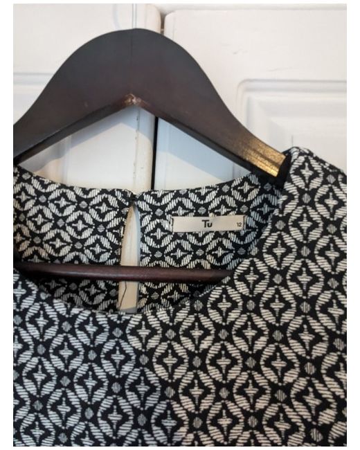 Elevate your wardrobe with this versitle black and white patterned midi shift dress. From TU by Sainsbury's this dress is perfect for any occasion, from casual to businessl events. The dress features short sleeves and a flattering stretch fit, ensuring both comfort and style. The material is stretchy and helps smooth the silhouette. This dress is a size 12 and suitable for women of all sizes.