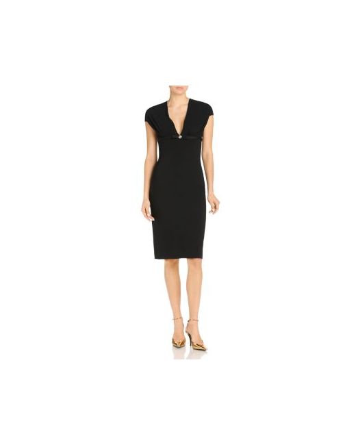 Versace Plunging Neck Dress.Color:Black.Size:38 IT/2 US.Material:Outer fabric 1: 95% viscose/5% elastane; outer fabric 2: 86% silk/14% elastane; lining 1: 75% acetate/25% silk; trim: 74% acetate/26% viscose.Dresses.