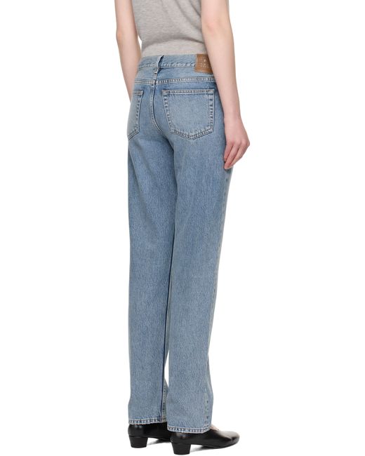 Non-stretch organic cotton denim jeans. Fading, whiskering, and subtle distressing throughout. · Straight-leg · Low-rise · Belt loops · Five-pocket styling · Zip fly · Logo patch at back waistband · Contrast stitching in tan Supplier color: True vintage