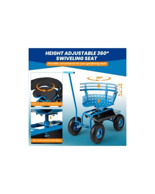 Multi-Functional Rolling Garden Cart with Swivel Seat Large Storage Basket di colore Blu
