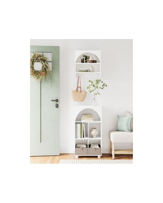 Our arched shoe storage cabinet brings cluttered spaces into sophisticated entryways. The distinctive curved design and crisp white finish create an upscale look, while four spacious cubbies provide smart storage for up to 15 pairs of shoes.