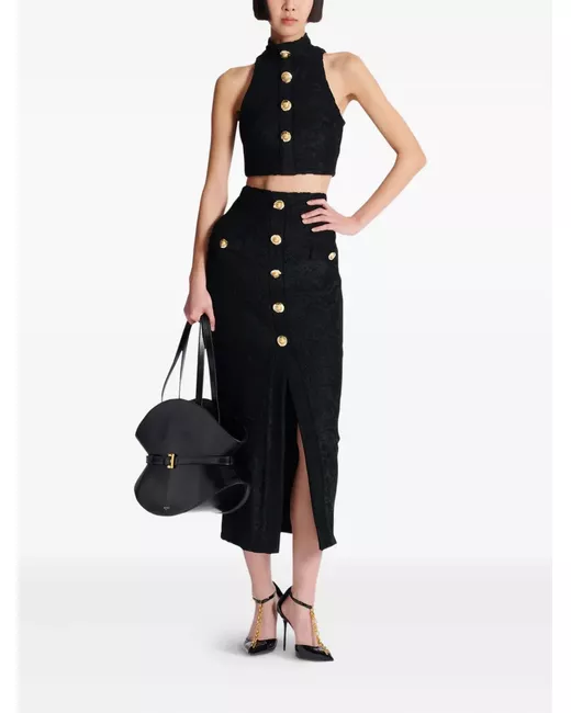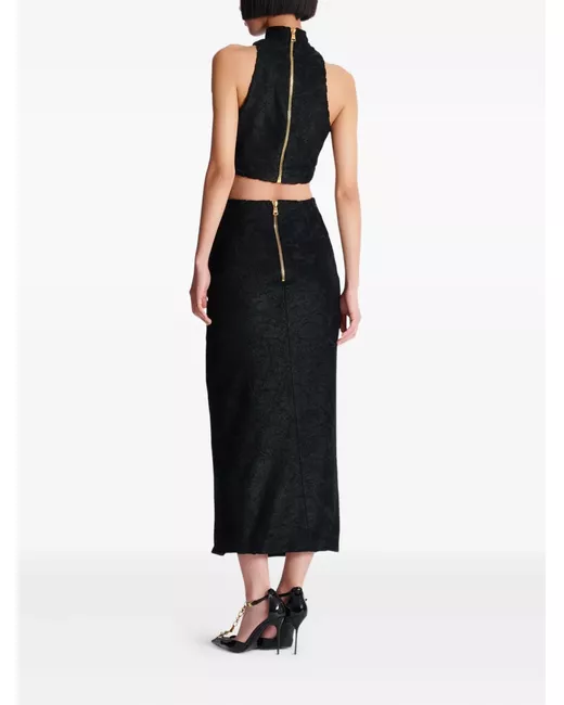 Patterned-jacquard midi pencil skirt