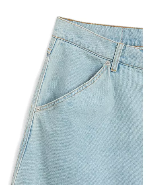 light blue logo patch detail five-pocket design belt loops