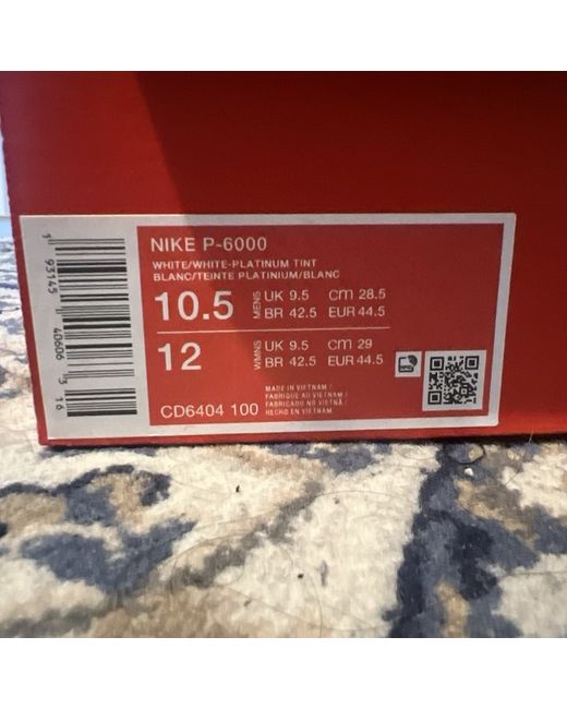 Elevate your sneaker game with these stylish Nike P-6000 trainers. Designed for both men and women, these white sneakers feature a sleek and modern silhouette that is perfect for any casual occasion. The UK shoe size is 9.5, while the US shoe size is 10.5, making them a comfortable fit for most people. Crafted with high-quality materials, these Nike trainers are built to last. The product line boasts a range of features, including a comfortable sole, breathable design, and a trendy look that is sure to turn heads. Whether you're hitting the gym or running errands, these Nike P-6000 trainers are the perfect addition to your shoe collection. IMPORTANT INFO (Was used once outside so the souls of the shoes are a bit black as seen in pictures but these shoes are still fresh)