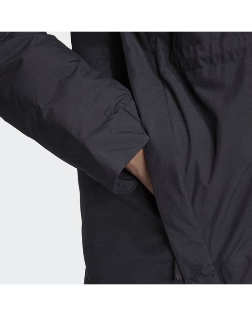 Wrap yourself in a cocoon of water-resistant warmth in this adidas dual-layer jacket. On the inner layer, COLD.RDY and overlapping baffles hug your body for maximum heat retention. The adaptable hood adjusts with a drawcord and two-way zip.