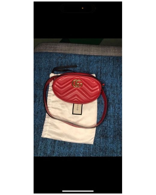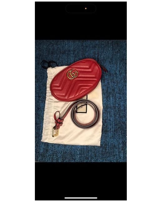 The Gucci Marmont Belt Bag in Red Matelasse Leather is a stylish and practical accessory for women. Made from luxurious red leather with a matelasse finish, this belt bag features a zip closure and a beige suede lining. The bold red handle/strap adds a touch of colour, making it perfect for casual occasions. With the iconic Gucci brand and high-quality materials, this belt bag exudes elegance and sophistication. Ideal for carrying essentials while adding a chic statement to any outfit. NO DUST BAG