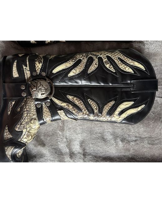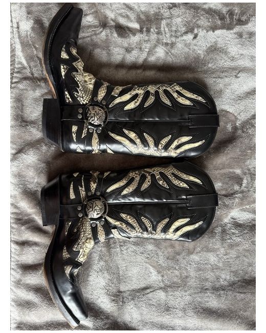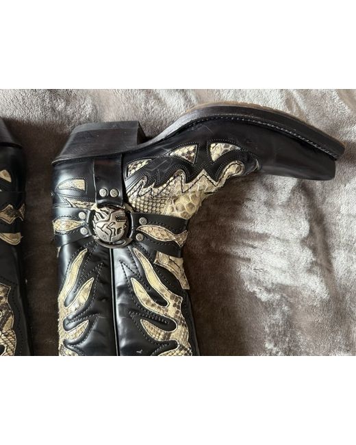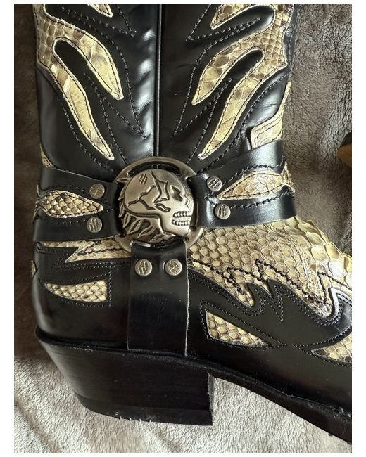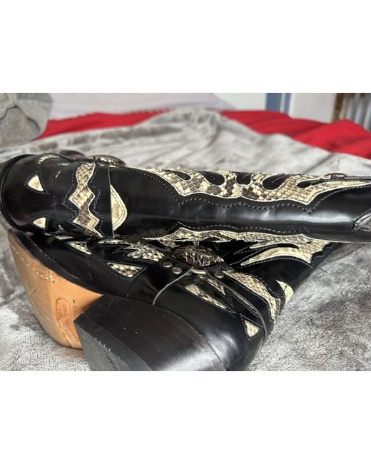 These new rock boots are a stylish addition to any woman's wardrobe. Made of black leather with a Cuban heel style, these boots have a standard shoe width for a comfortable fit.