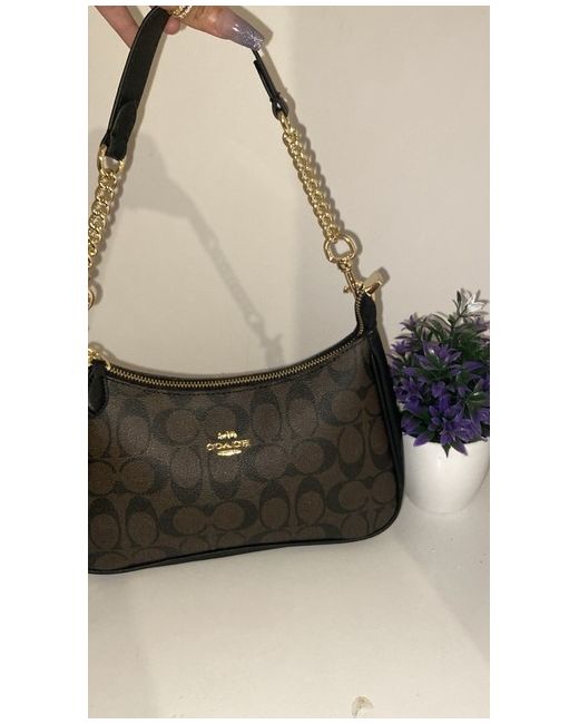 The Coach Teri Shoulder Bag is a stylish and versatile accessory for women. Made from high-quality leather in a dark brown colour, this shoulder bag features a detachable strap and an adjustable shoulder strap, making it perfect for everyday use. The bag has a zip closure and is spacious enough to hold all your essentials. The Coach brand is known for its quality craftsmanship and timeless designs, making this shoulder bag a must-have addition to any woman's wardrobe.