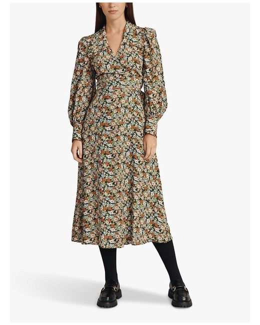 GORGEOUS Ghost Heidi Floral Disty Midi dress. The most beautiful 70s style floral with a cool exaggerated collar.