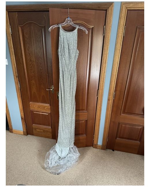 Bought for £585 never got to wear it due to prom getting cancelled in the pandemic Colour: Silver Size: UK 4 US O NO RETURN