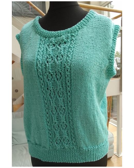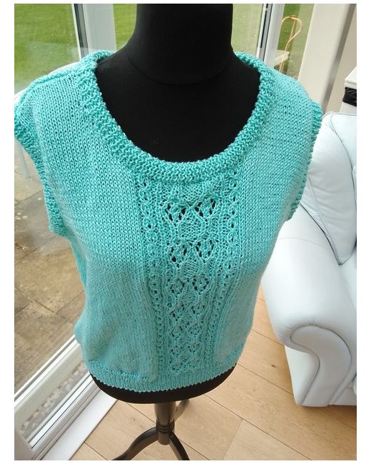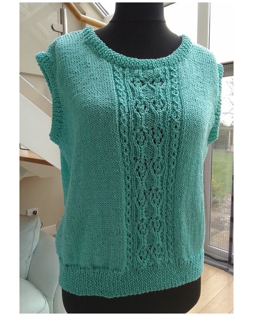 This gorgeous slipover vest is knitted in Patons Cotton 'Perle'. It is 100% cotton with a lovely firm texture. It features a delicate lacystyle pattern to the front.