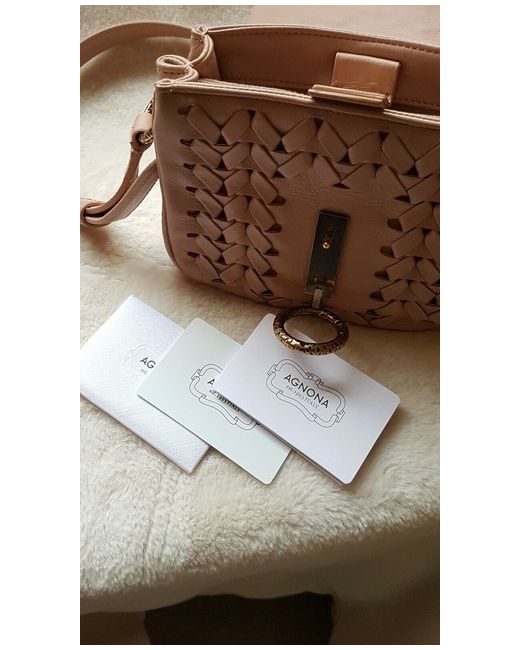 Agnona mini babe woven leather bag. This cross body is rendered in leather and features a woven panel and a long strap.