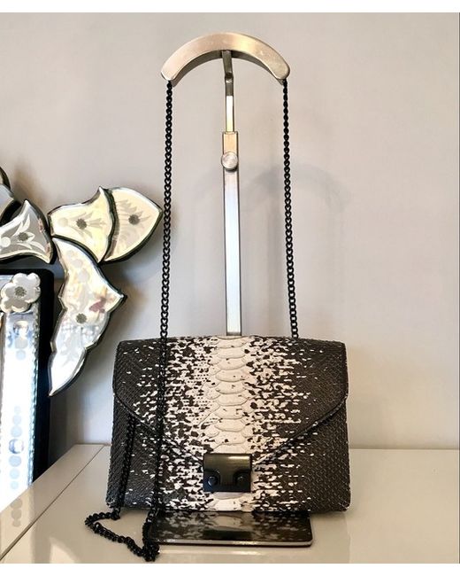 NWT LOEFFLER RANDALL PYTHON LEATHER GUNMETAL & IVORY CROSSBODY BAG - BLACK CHAIN STRAP Gunmetal and ivory python Loeffler Randall crossbody bag with black coated hardware, chain-link shoulder strap, dual compartments at interior, inside mirror, black and white printed lining and push-lock closure at front flap. FABRIC - 100% Leather MEASUREMENTS 8” X 6” X 1.5” Strap drop 23” Strap length 46” Immaculate condition brand new Styled with Zara broderie anglais dress available on another listing