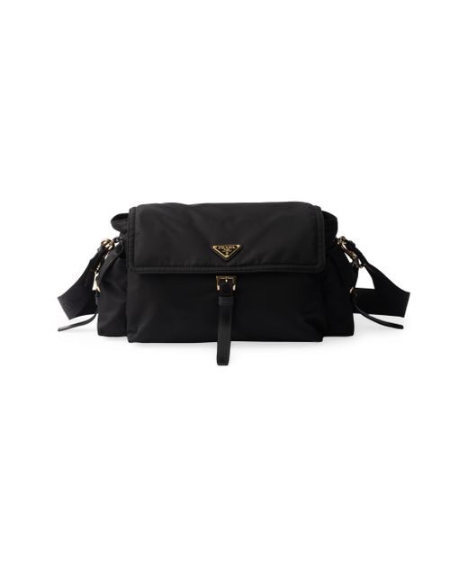 Padded tape handle Detachable, adjustable woven logo tape shoulder strap Front zipper pocket Side pockets with flap Metal hardware Enameled metal triangle logo on the flap With zipper closure, flap and strap Re-Nylon lining with patch pocket Imported 100% Recycled Polyamide 14.7 W x 7.4 H x 4.7 L in. Lsd Handbags - Prada Handbags Access > Prada > Saks Fifth Avenue > Barneys. Prada. Color: Black.