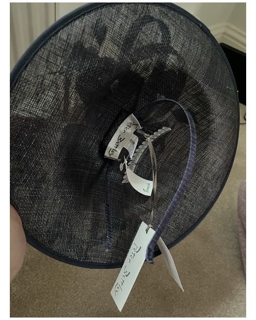 Elegant and never worn, this ‘French Navy’ Peter Bettley fascinator is the perfect finishing touch for a wedding or a day at the races. It still has its original tags and packaging, and was originally purchased from Fenwick for £139.99.