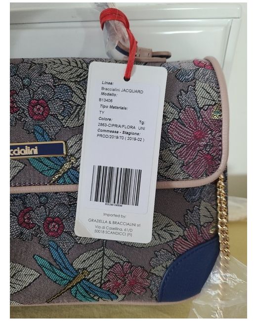 Braccialini medium sized bag new with tags. Jacquard + faux leather, gold chain strap. Cipria/ flora print, beautiful blue mix colours. Comes with dust bag