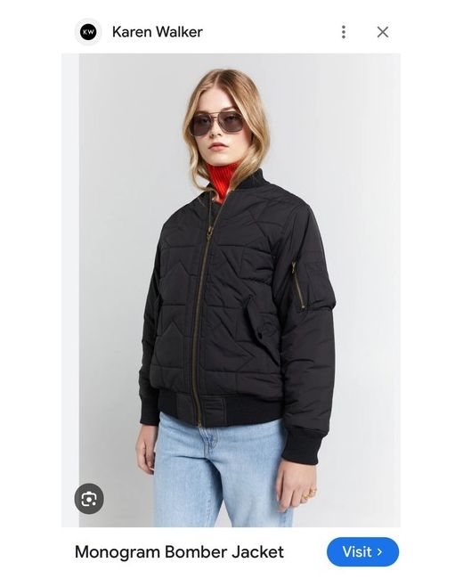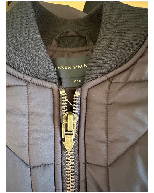 This Karen Walker Monogram Bomber Jacket is a military-inspired silhouette made from a durable, padded recycled polyester shell showcasing the Karen Walker monogram. Perfect for layering, it is crafted with a longline fit and length that finishes just below the hip.