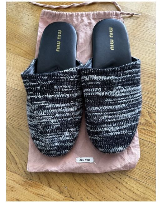 The Miu Miu wool slippers are a luxurious choice for women and men in UK shoe size 7.5. Made with a soft wool upper and leather lining, these grey slippers exude elegance and comfort. Perfect for lounging at home or adding a touch of sophistication to a casual outfit, these slippers are a stylish and cosy addition to any woman's wardrobe.