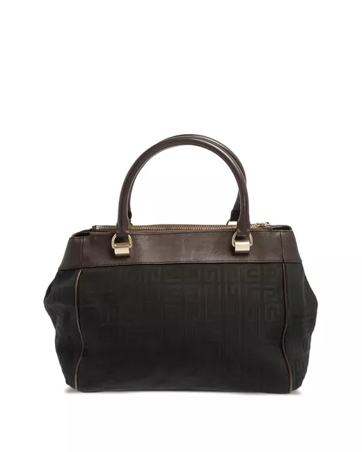 black canvas leather trim concealed press-stud fastening top zip fastening two rolled top handles signature 4G motif logo stamp to the front gold-tone hardware partitioned compartment Condition: GOOD. This previously owned and used item is in good condition with minimal signs of use. This may include fading of material or plating and scratches.