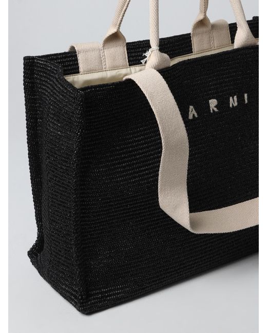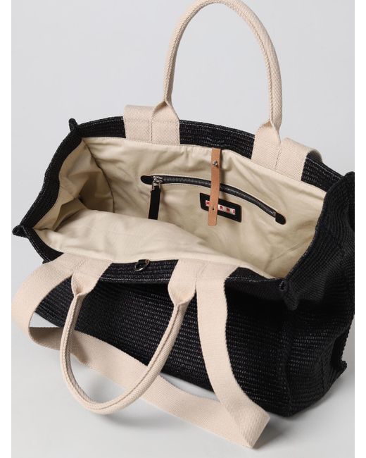 Square Design Shoulder Model Tote Bag Woven Raffia Marni Logo Embroidered In Contrast Interlocking Closure With Leather Tongue Interior In Cotton Pocket With Zip Applied Logo Double Wide Flat Handles In Fabric Wide Handles Length: 35.5 Cm Double Handles Made In Italy