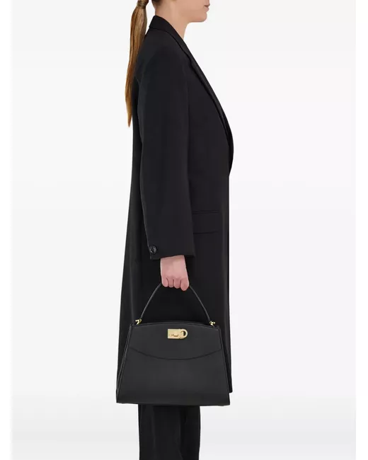 black single top handle adjustable detachable shoulder strap Gancini flip-lock fastening main compartment
