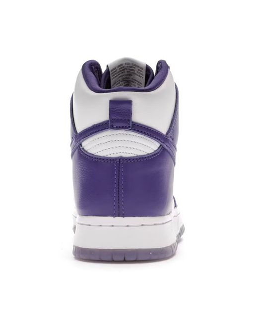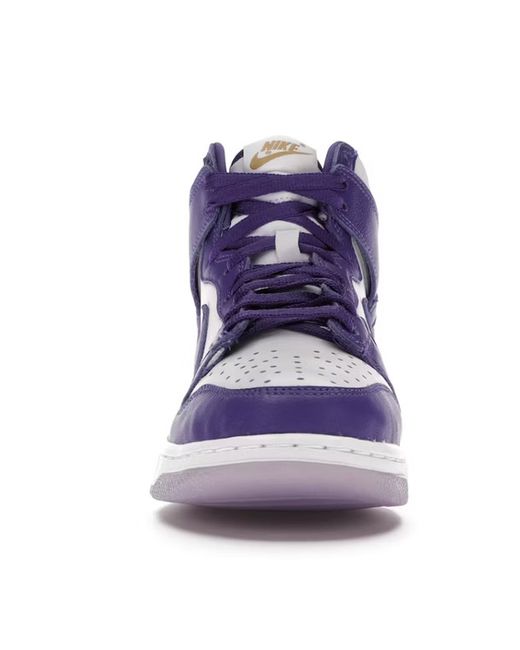 This release draws inspiration from the Japanese exclusive City Attack Dunk High which released in 1999. Featuring a mix of smooth white and Varsity Purple leather on the upper, this upcoming release holds similar two-toned features as the Spartan Green and Maize colorways.