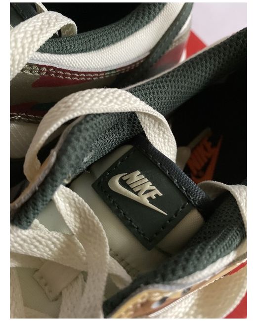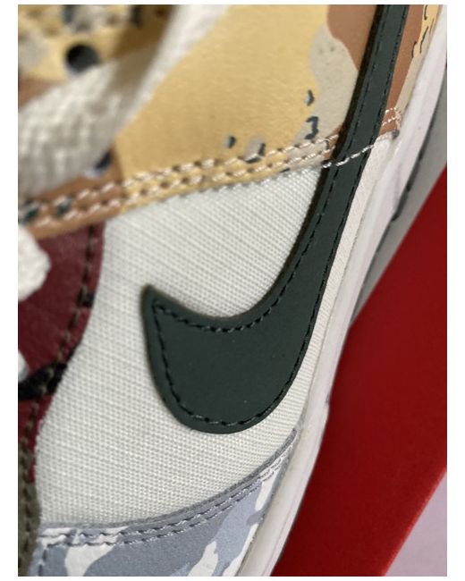 Featuring a union of grey, tan and green camouflage patterns on an off-white textile base, this mismatched military look surprisingly appears harmonious. To balance the symphony of prints, the Nike Swoosh gets a plain black colour while the heel tab gets a pop of red.