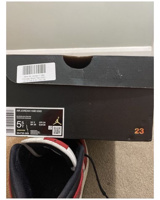 These are some Nike Air Joddan 1’s mid tops I have worn them however not noticeable in extremely good condition with zero creases and no stains the colours have not faded and it goes with other clothes aswell these are a good gift or just a treat for yourself or others they are size uk 5/us 5.5