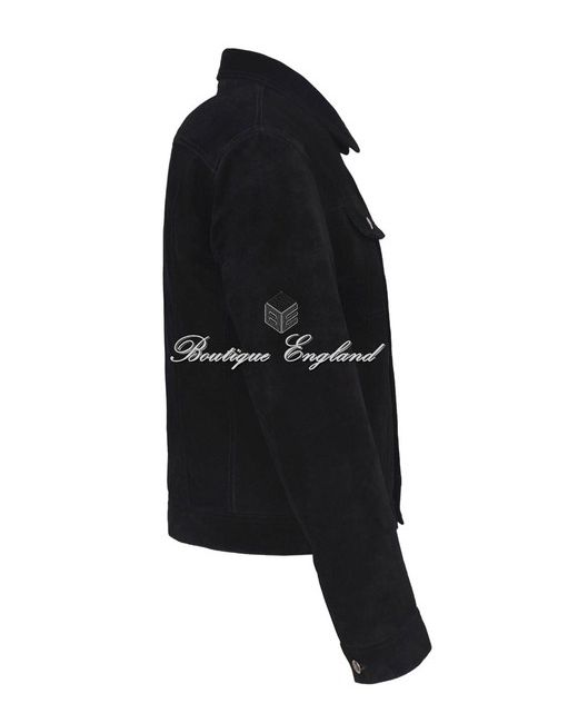 The 'TRUCKER' Jacket. Made from genuine real black calf suede leather. It takes on the character of the wearer. Natural leather is breathable so you wont feel sticky and suffocated as you do with PVC/Synthetic imitation.
