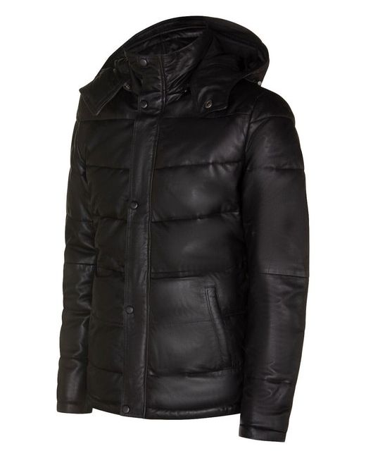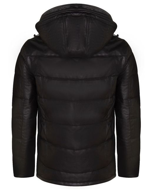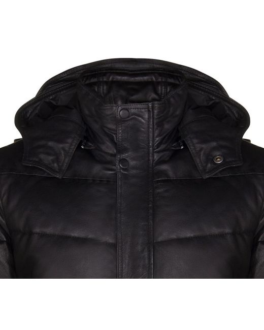 Puffer Leather Jacket Quilted Warm Bomber Lambskin Hooded da Men di colore Nero