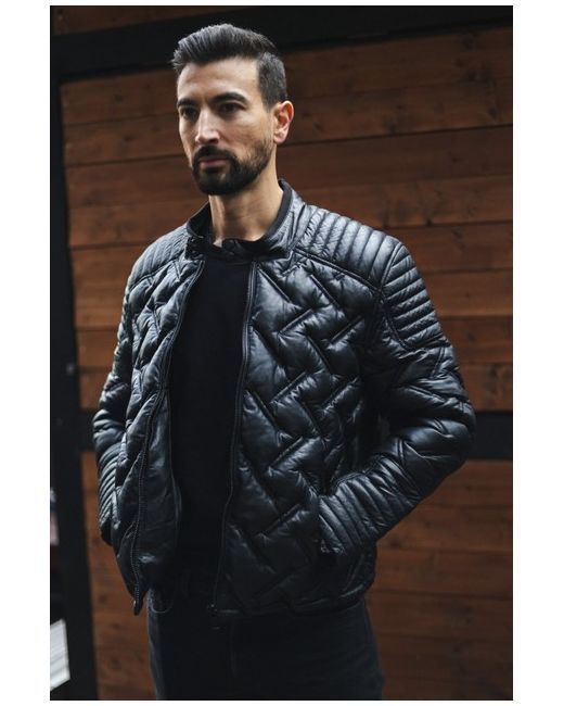 Puffer Biker Leather Jacket Quilted Bomber Warm Lambskin da Men di colore Nero