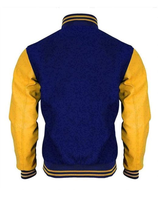 • External: Premium Quality Wool & Faux Leather. • Color: Blue & Yellow. • Sleeves: Open Hem Cuffs. • Pockets: Two Front-side Pockets. SUITABLE FOR 42"-44" CHEST. Product Details 4- Shoulder Size. 3- Sleeves Size.
