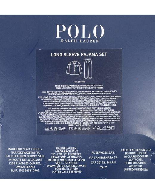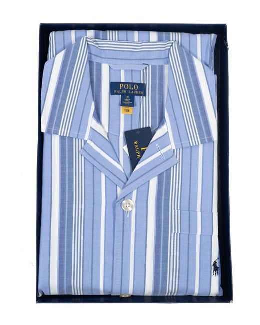 Polo Ralph Lauren. A simple and classic pajama set by Polo Ralph Lauren. Featuring a tonal stripe design. Button up front on the jacket and a button and elasticated waist on the trousers. Colour - Blue.
