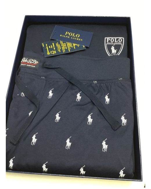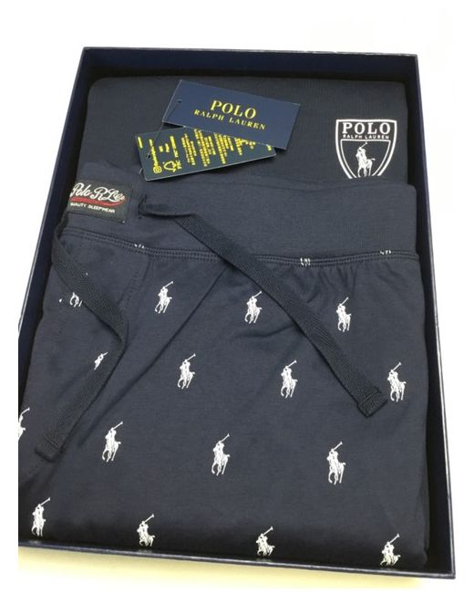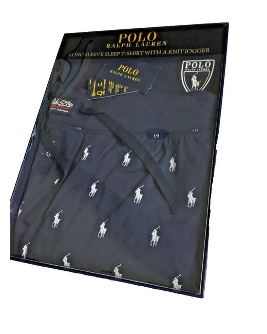 2 Piece Pyjama Set From Ralph Lauren. Crew Neck Tee Shirt Long Sleeved. New And Boxed. Jogging Bottoms Have Repeat Pony Pattern In White. Logo In White To The Chest.