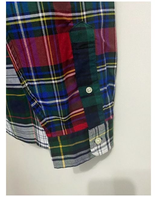 Custom Fit Button Down Check Shirt Green Navy Multi