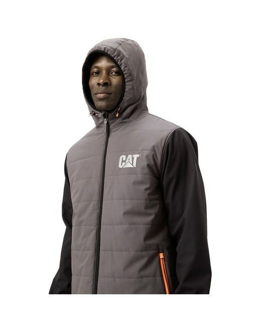 Style: Windbreaker. The Tech Hybrid Jacket features a center zip up closure with interior storm flap and two lower zip closure pockets, three interior pockets with one at the chest and two drop-in. It also has an elasticord adjustable 3-piece hood and hem.