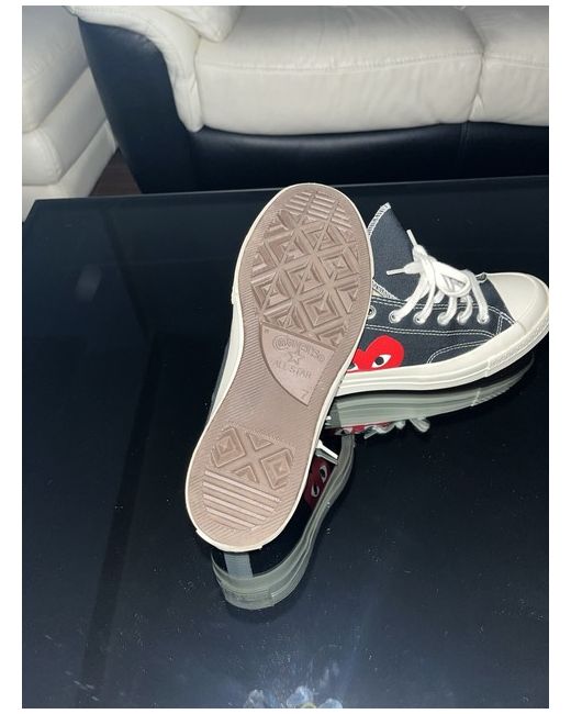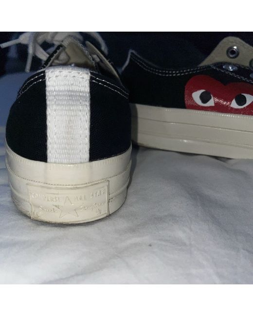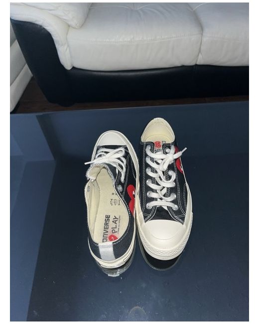 These are navy Converse X Valentino low-top trainers in UK size 7. They are unisex adults' shoes with a sneaker style, suitable for men.