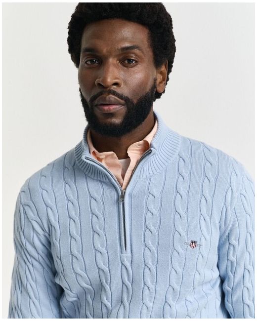 Crafted with the modern gentleman in mind, the GANT Cotton Cable Half Zip jumper blends classic style with contemporary design. This regular fit pullover, rendered in a serene blue shade, features the timeless cable knit pattern that adds a touch of sophistication to any outfit. Made entirely from cotton, it promises comfort and breathability throughout the day. Practical accents, such as the convenient zip detail, combine functionality with fashion. Whether dressed up for the office or styled casually for a weekend outing, this jumper is a versatile addition to any men's wardrobe. Embrace the effortless elegance that comes with this GANT piece, a testament to understated style and enduring quality.